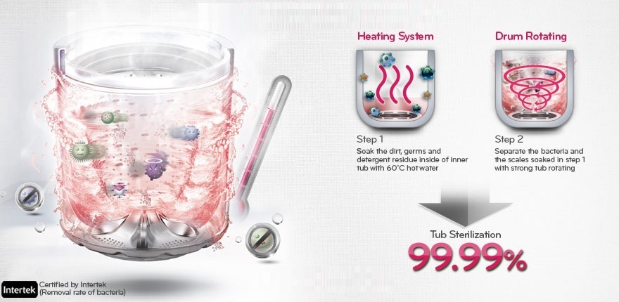 Vệ sinh mặt trong và ngoài lồng giặt bằng chức năng kháng khuẩn kết hợp nhiệt mỗi chu trình giặt là một trong các bước kháng khuẩn